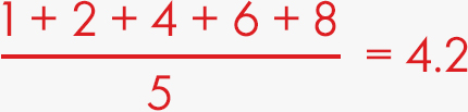 1 + 2 + 4 + 6 + 8 = 21 | 21 divided by 5 = 4.2